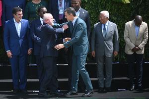 (251107) -- BELEM, 7 noviembre, 2025 (Xinhua) -- (De izq. a der.) El presidente de las Comoras, Azali Assoumani, el...