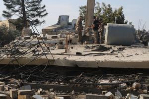 (251107) -- ZAWTAR AL-SHARQIYA, 7 noviembre, 2025 (Xinhua) -- Imagen del 7 de noviembre de 2025 de personas inspeccionando edificios...