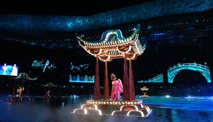 (251109) -- GUANGZHOU, 9 noviembre, 2025 (Xinhua) -- Un artista realiza una presentación durante la ceremonia de inauguración de los...