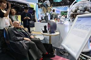 (251108) -- SHANGHAI, 8 noviembre, 2025 (Xinhua) -- Un invitado prueba Scent TV en el Pabellón de China durante la...