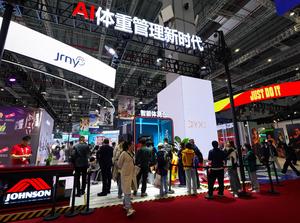(251108) -- SHANGHAI, 8 noviembre, 2025 (Xinhua) -- Personas visitan el estand de Johnson Health Tech en el área de...