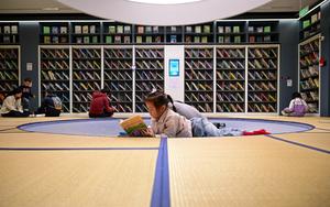 (251109) -- SHANGHAI, 9 noviembre, 2025 (Xinhua) -- Niños leen libros en una biblioteca pública, en Shanghai, en el este...