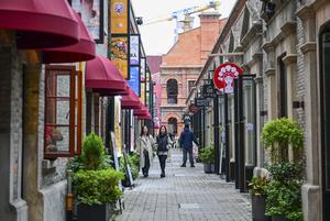 (251109) -- SHANGHAI, 9 noviembre, 2025 (Xinhua) -- Personas visitan un distrito emblemático de la moda, en Shanghai, en el...