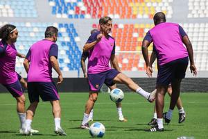 (251107) -- SAN SALVADOR, 7 noviembre , 2025 (Xinhua) -- Jugadores participan en un entrenamiento previo al partido de leyendas...
