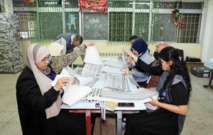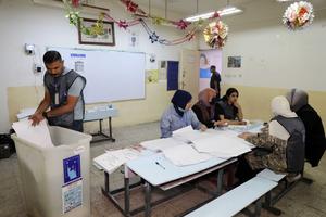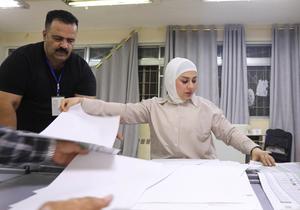 (251111) -- BAGDAD, 11 noviembre, 2025 (Xinhua) -- Funcionarios electorales cuentan las papeletas en un centro de votación, en Bagdad,...