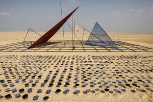 (251111) -- EL CAIRO, 11 noviembre, 2025 (Xinhua) -- Una instalación artística es exhibida durante la exposición internacional de arte...