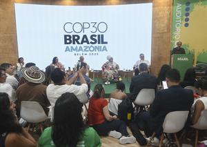 (251111) -- BELEM, 11 noviembre, 2025 (Xinhua) -- La ministra de Medio Ambiente y Cambio Climático brasileña, Marina Silva (d-atrás),...