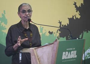 (251111) -- BELEM, 11 noviembre, 2025 (Xinhua) -- La ministra de Medio Ambiente y Cambio Climático brasileña, Marina Silva, habla...