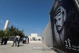 (251111) -- RAMALLAH, 11 noviembre, 2025 (Xinhua) -- Imagen del 11 de noviembre de 2025 de la tumba del fallecido...