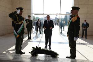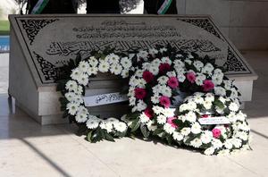 (251111) -- RAMALLAH, 11 noviembre, 2025 (Xinhua) -- El primer ministro palestino, Mohammad Mustafa, visita la tumba del fallecido líder...