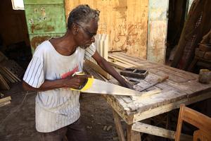 (251110) -- JARTUM, 10 noviembre, 2025 (Xinhua) -- Imagen del 28 de octubre de 2025 de un artesano fabricando un...