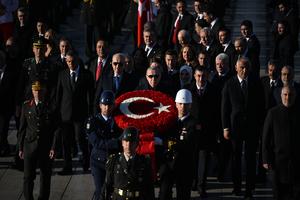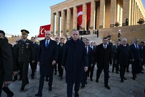 (251110) -- ANKARA, 10 noviembre, 2025 (Xinhua) -- El presidente turco, Recep Tayyip Erdogan (c), asiste a una ceremonia para...