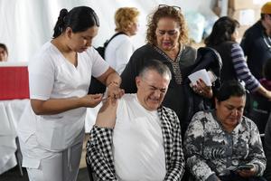 (251112) -- CIUDAD DE MEXICO, 12 noviembre, 2025 (Xinhua) -- Una trabajadora de la salud aplica una vacuna contra neumococo...