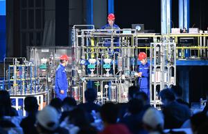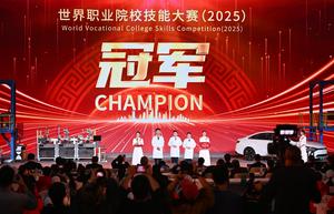 (251114) -- TIANJIN, 14 noviembre, 2025 (Xinhua) -- Concursantes del Colegio Vocacional de Zaozhuang compiten durante la Competencia Mundial de...