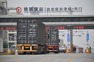 (251116) -- XI'AN, 16 noviembre, 2025 (Xinhua) -- Imagen del 14 de noviembre de 2025 de un camión llegando a...