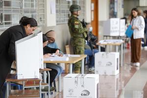 (251116) -- QUITO, 16 noviembre, 2025 (Xinhua) -- Una persona emite su voto durante la jornada electoral en el Colegio...