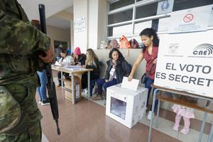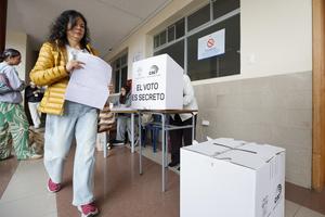 (251116) -- QUITO, 16 noviembre, 2025 (Xinhua) -- Una persona emite su voto durante la jornada electoral en el Colegio...