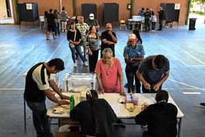 (251116) -- SANTIAGO, 16 noviembre, 2025 (Xinhua) -- Una persona se registra para emitir su voto en un centro electoral...