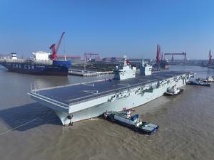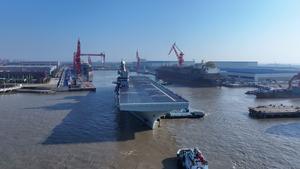 (251114) -- SHANGHAI, 14 noviembre, 2025 (Xinhua) -- El "Sichuan", primer buque de asalto anfibio Tipo 076 de China, zarpa...