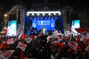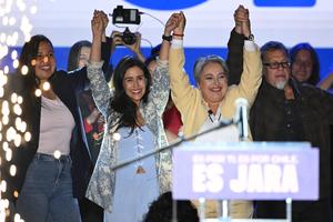 (251114) -- VALPARAISO, 14 noviembre, 2025 (Xinhua) -- Imagen del 13 de noviembre de 2025 de simpatizantes de la candidata...