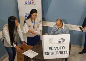 (251114) -- QUITO, 14 noviembre, 2025 (Xinhua) -- Un ciudadano con movilidad reducida participa en el proceso de la jornada...