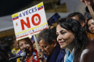 (251117) -- QUITO, 17 noviembre, 2025 (Xinhua) -- Imagen del 16 de noviembre de 2025 de la excandidata presidencial ecuatoriana,...