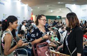 (251115) -- BELEM, 15 noviembre, 2025 (Xinhua) -- Imagen del 12 de noviembre de 2025 de invitados probando un dispositivo...