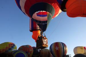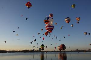 (251115) -- LEON, 15 noviembre, 2025 (Xinhua) -- Globos aerostáticos se elevan durante el Festival Internacional del Globo 2025, en...