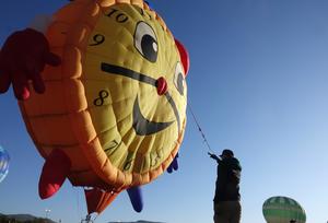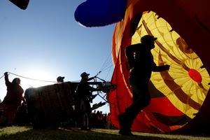 (251115) -- LEON, 15 noviembre, 2025 (Xinhua) -- Un hombre sostiene un globo aerostático durante el Festival Internacional del Globo...