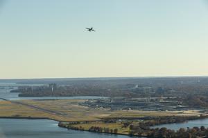 (251117) -- WASHINGTON, 17 noviembre, 2025 (Xinhua) -- Imagen tomada desde lo alto del Monumento a Washington del Aeropuerto Nacional...