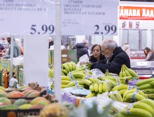 (251117) -- TORONTO, 17 noviembre, 2025 (Xinhua) -- Clientes compran fruta en una tienda mayorista Costco, en Toronto, Canadá, el...