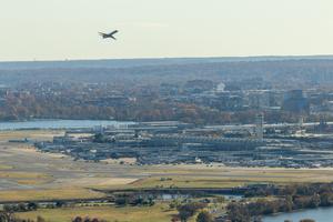 (251117) -- WASHINGTON, 17 noviembre, 2025 (Xinhua) -- Imagen tomada desde lo alto del Monumento a Washington del Aeropuerto Nacional...