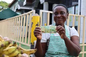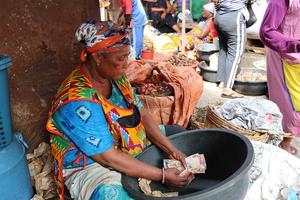 (251119) -- ACCRA, 19 noviembre, 2025 (Xinhua) -- Imagen del 18 de noviembre de 2025 de una comerciante contando billetes...