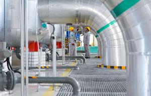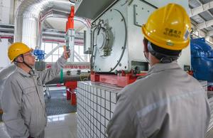 (251118) -- YINCHUAN, 18 noviembre, 2025 (Xinhua) -- Empleados inspeccionan las instalaciones de calefacción en una empresa de servicios de...