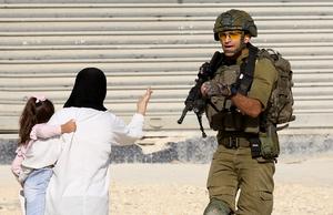 (251119) -- TULKARM, 19 noviembre, 2025 (Xinhua) -- Imagen del 18 de noviembre de 2025 de un soldado israelí impidiendo...