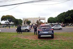 (251123) -- BRASILIA, 23 noviembre, 2025 (Xinhua) -- Imagen del 22 de noviembre de 2025 de policías militares vigilando frente a la Superintendencia de la Policía Federal, en Brasilia, capital de Brasil. El expresidente brasileño, Jair Bolsonaro fue detenido de forma preventiva en la mañana del sábado en Brasilia, en cumplimiento de una orden expedida por el Supremo Tribunal Federal. De acuerdo con las primeras informaciones divulgadas por la PF, la detención no corresponde al cumplimiento de una pena, sino a una medida cautelar solicitada por los investigadores. Bolsonaro fue arrestado alrededor de las 06:00 hora local y trasladado inmediatamente a la Superintendencia de la Policía Federal en la capital federal. (Xinhua/Valter Campanato/Agencia Brasil) (rtg) (ah)