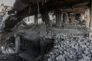 (251120) -- GAZA, 20 noviembre, 2025 (Xinhua) -- Palestinos inspeccionan las viviendas destruidas después de ataques aéreos israelíes, en el barrio de Al-Zeitoun, en el este de la Ciudad de Gaza, el 20 de noviembre de 2025. (Xinhua/Rizek Abdeljawad) (rtg) (ra) (ce)