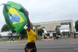 (251123) -- BRASILIA, 23 noviembre, 2025 (Xinhua) -- Una simpatizante del expresidente brasileño, Jair Bolsonaro, quien se encuentra en detención...