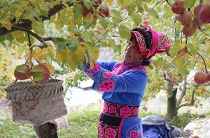(251121) -- MAOXIAN, 21 noviembre, 2025 (Xinhua) -- Imagen del 20 de noviembre de 2025 de un aldeano cosechando manzanas,...