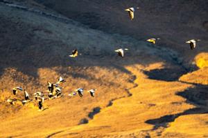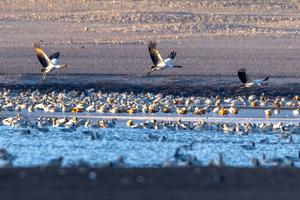 (251123) -- LHUNZHUB, 23 noviembre, 2025 (Xinhua) -- Imagen del 23 de noviembre de 2025 de aves migratorias, en el...