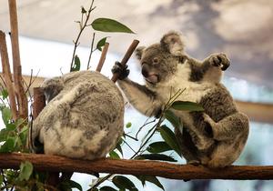 (251123) -- BRISBANE, 23 noviembre, 2025 (Xinhua) -- Imagen del 23 de noviembre de 2025 de koalas sobre una rama...