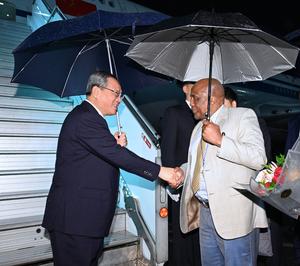 (251121) -- JOHANNESBURGO, 21 noviembre, 2025 (Xinhua) -- El primer ministro chino, Li Qiang, llega a Johannesburgo, Sudáfrica, el 20...