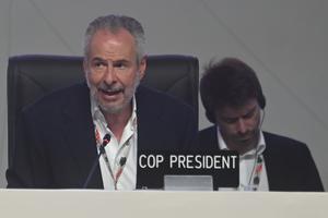 (251122) -- BELEM, 22 noviembre, 2025 (Xinhua) -- El presidente de la 30ª Conferencia de las Partes (COP30) de las...