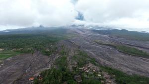(251121) -- LUMAJANG, 21 noviembre, 2025 (Xinhua) -- Imagen del 21 de noviembre de 2025 de un área afectada por...
