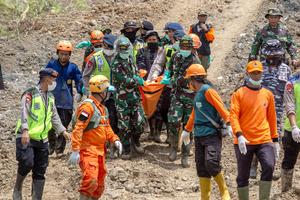 (251121) -- JAVA CENTRAL, 21 noviembre, 2025 (Xinhua) -- Imagen del 20 de noviembre de 2025 de rescatistas trasladando una...