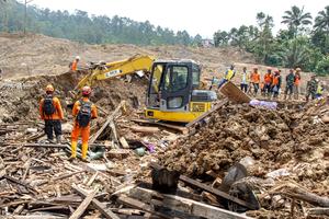 (251121) -- JAVA CENTRAL, 21 noviembre, 2025 (Xinhua) -- Imagen del 20 de noviembre de 2025 de rescatistas trabajando en...