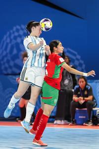 (251122) -- CIUDAD DE PASIG, 22 noviembre, 2025 (Xinhua) -- Dayana Rivera (i), de Colombia, compitiendo ante Katerine Delev (d),...