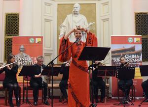 (251122) -- GRAZ, 22 noviembre, 2025 (Xinhua) -- Imagen del 21 de noviembre de 2025 de una cantante interpretando una...