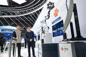 (251122) -- WUHAN, 22 noviembre, 2025 (Xinhua) -- Imagen del 21 de noviembre de 2025 visitantes observando una máquina con...