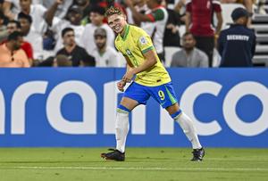 (251122) -- DOHA, 22 noviembre, 2025 (Xinhua) -- Imagen del 21 de noviembre de 2025 de Dell, de Brasil, festejando...